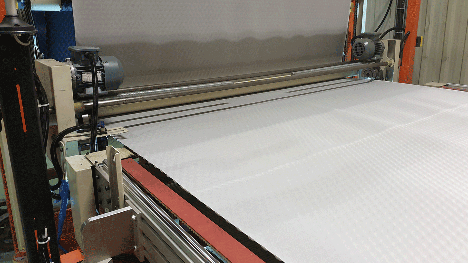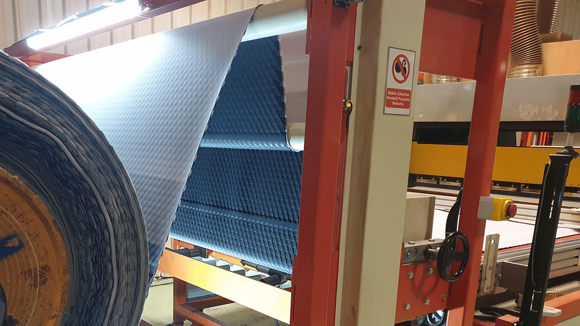 HOT EMBOSSING üretim hattı, otomotiv tesktilinde kullanılan koltuk kılıfı gibi kumaşların üzerinde üç boyutlu (kabartma) desen oluşturmak amacıyla özel olarak tasarlanmıştır. Operatör müdahalesi olmadan rulodan ruloya üretim kabiliyeti sayesinde Yalın Üretim ilkelerinin büyük bir kısmını karşılamaktadır.